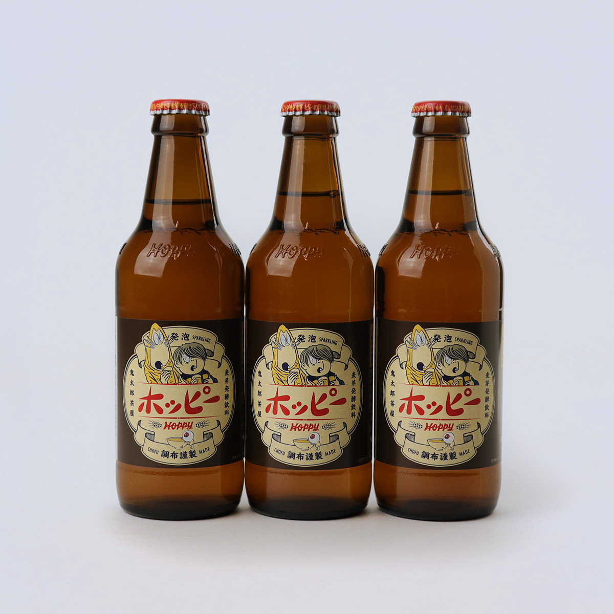 鬼太郎ラベルのホッピーを二十世紀梨、黄金生姜シロップで割った飲みやすい味わいで提供。