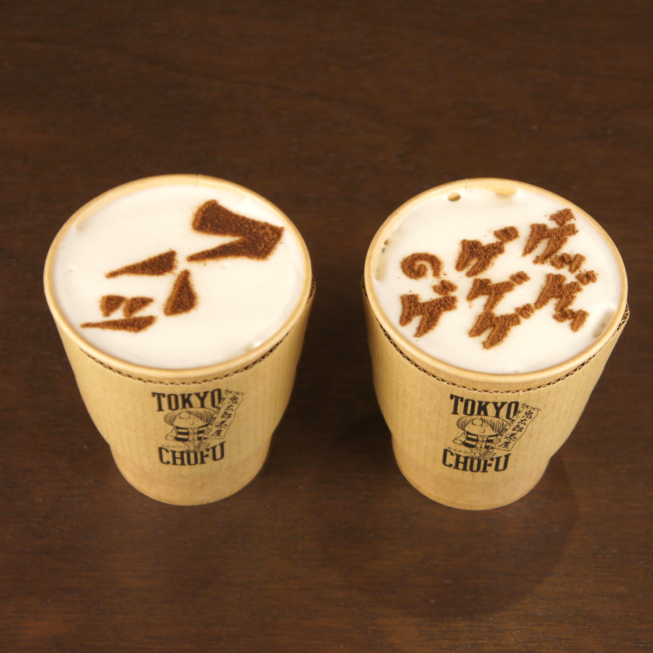 水木漫画のオノマトペが描かれた温かいチョコドリンク。