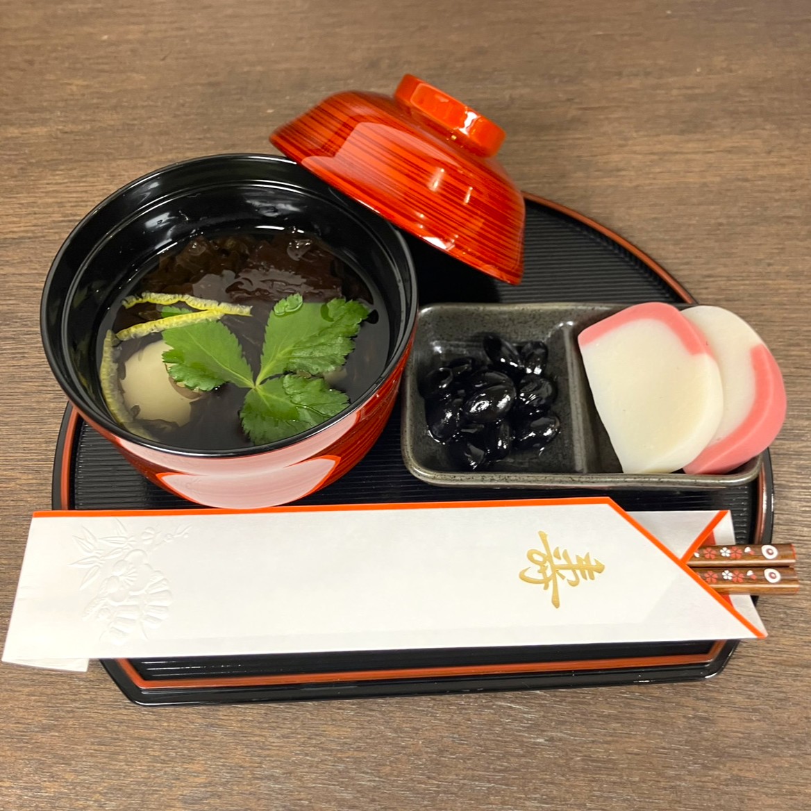 出雲風雑煮に使われる十六島海苔(うっぷるいのり)は「かもじのり」とも呼ばれ、生産量は年間1tにも満たず約9割が島根県内に出荷される為、県外ではなかなか味わうことができない最高級品です。水木しげるさんの奥様は出雲地方出身で、東京で十六島海苔はなかなか手に入らなかった為、水木家では乾燥海苔を酒でほぐしてお雑煮に入れていたそうです。「鬼太郎茶屋 はなれ」では贅沢に十六島海苔を使用した出雲風雑煮をお楽しみください。
